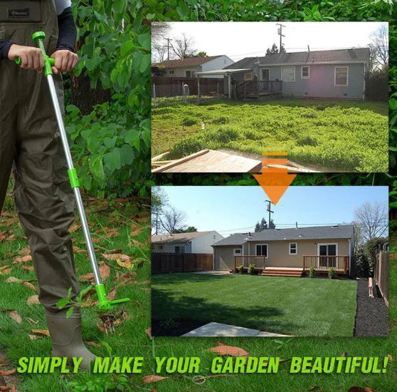 Оваа алатка за отстранување на плевел е иновативно решение за лесно и ефективно одржување на вашата градина. Со нејзиниот специјален дизајн, можете брзо целосно да го извлечете коренот на плевелот, спречувајќи го неговото повторно растење и ширење. Еколошка е, бидејќи не бара употреба на хемикалии или хербициди, заштитувајќи ја природата и вашите растенија.