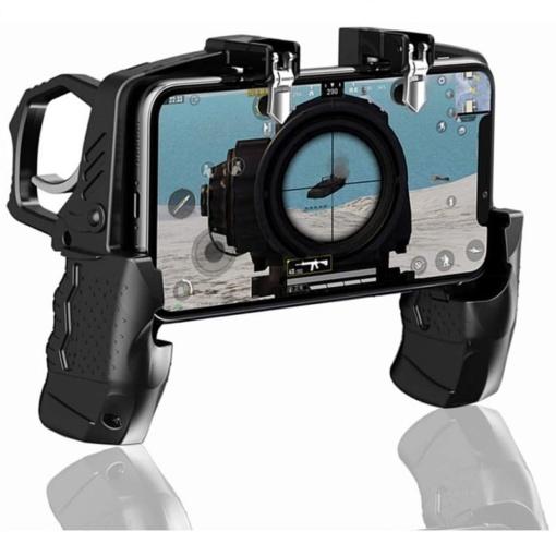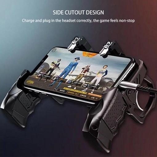 Безжичен контролор за видео игри за паметни телефони со модерен и иновативен дизајн. Идеален за играње во автомобил, автобус, метро или било кое место. Комбинира гејмпад, активирач за игра и држач за мобилен телефон, погоден за сите модели на мобилни телефони од 4 до 6,5 инчи, и за игри како PUBG Mobile, Rules of Survival, Survivor Royale и Critical Ops.
