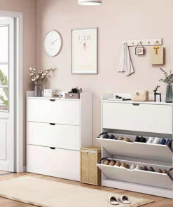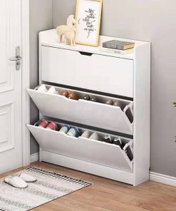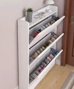 Полица за чевли – Елегантен дизајн. Со современ и елегантен дизајн, оваа полица за чевли е идеално решение за уредување на вашата колекција чевли. Дизајнот на три нивоа нуди место за сите ваши омилени обувки, а механизамот за отворање на сите полици истовремено овозможува лесен пристап.