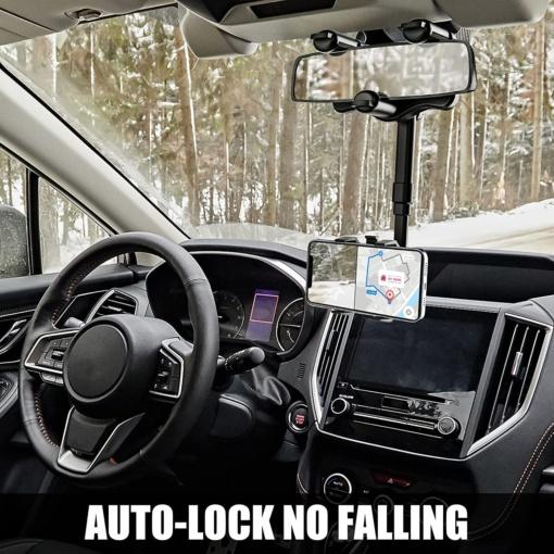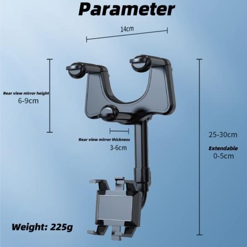Универзален држач за телефон на ретровизор е идеално решение за безбедно користење на вашиот мобилен телефон додека возите. Со можност за ротација од 360°, овој држач обезбедува одлична видливост без да го заматува огледалото.