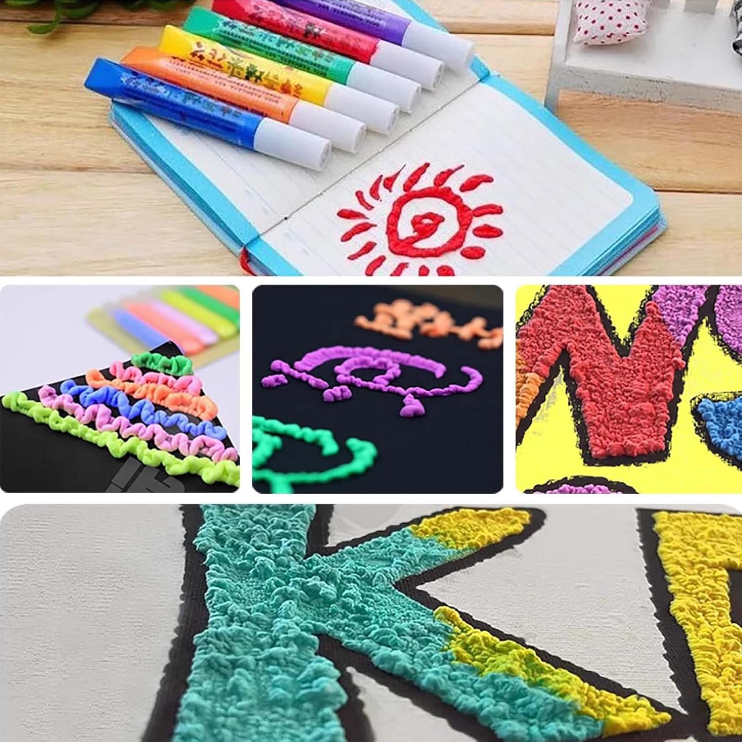 Сетот фломастери создава впечатливи 3D ефекти со мека релјефна текстура. Неговата нетоксична формула е безбедна за деца и е идеална за уметнички DIY проекти, декорација на честитки или училишни задачи.
