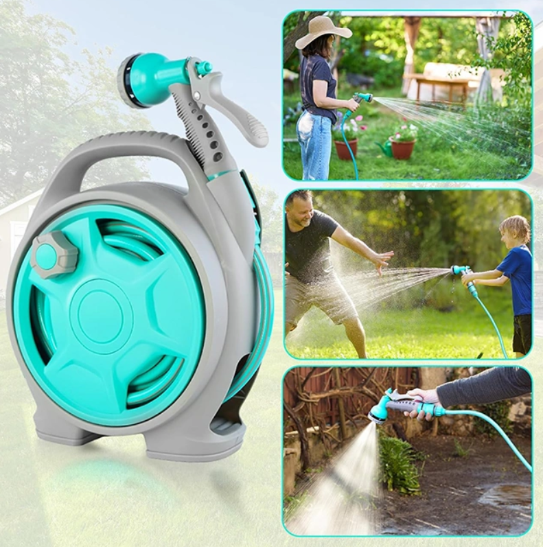 Градинарско црево со моталка и прскалка со должина од 15м е идеалното решение за секоја градина. Изработено од издржлив ПВЦ и АБС материјал, ова црево овозможува лесно наводнување на целата градина. Флексибилноста и компактниот дизајн го прават лесно за пренесување. Вградената прскалка со повеќе режими и практичната моталка за брзо навиткување го прават користењето ефикасно и удобно.