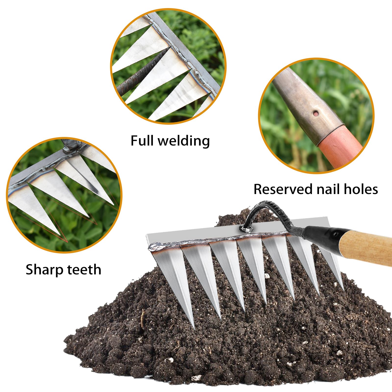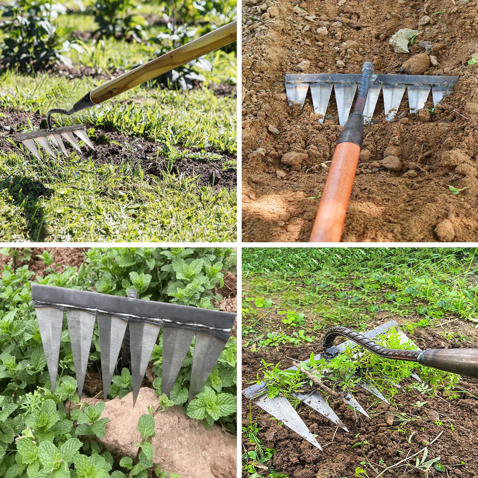 Греблото лесно ги отстранува корените и грутките на почвата. Издржливо и удобно при користење. Изработено е од високо-јаглероден челик со антирѓосувачки премаз за долготрајна употреба.