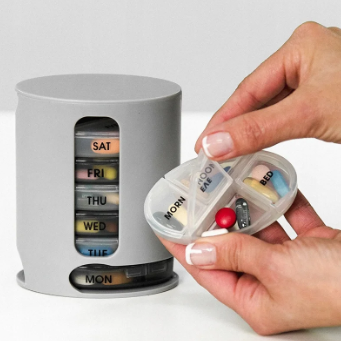 Кутијата за неделна доза за таблети е практично решение за организирање на вашите лекови и витамини. Со четири прегради за секој ден – утро, пладне, вечер и пред спиење, таа овозможува лесно планирање на вашите апчиња и витамини.
