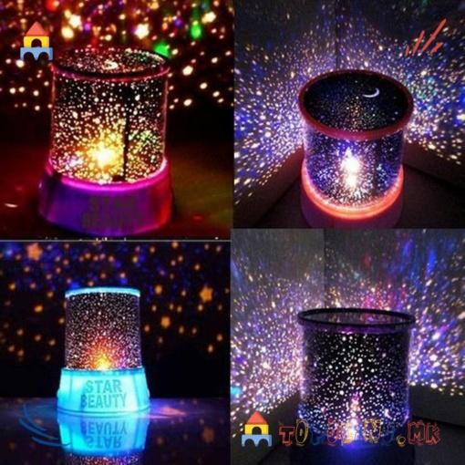 Собна светилка со над 1000 ѕвезди, која проектира огромен број ѕвезди низ целата просторија. ЛЕД светилката ги проектира ѕвездите во 3 наизменични бои, а има и копче за вклучување на дополнителна бела ЛЕД светилка за засилување на ефектот.