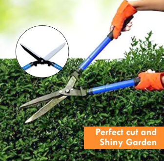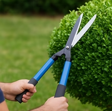 Компактни ножици за кастрење жива ограда и грмушки, изработени од висококвалитетен јаглероден челик 65MN. Остриот раб овозможува лесно сечење на гранки, идеални за обликување на чемпрес, жива ограда и декоративни растенија.