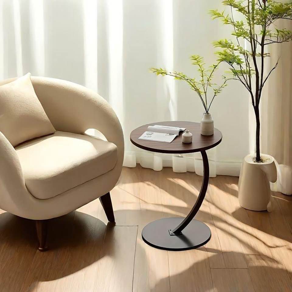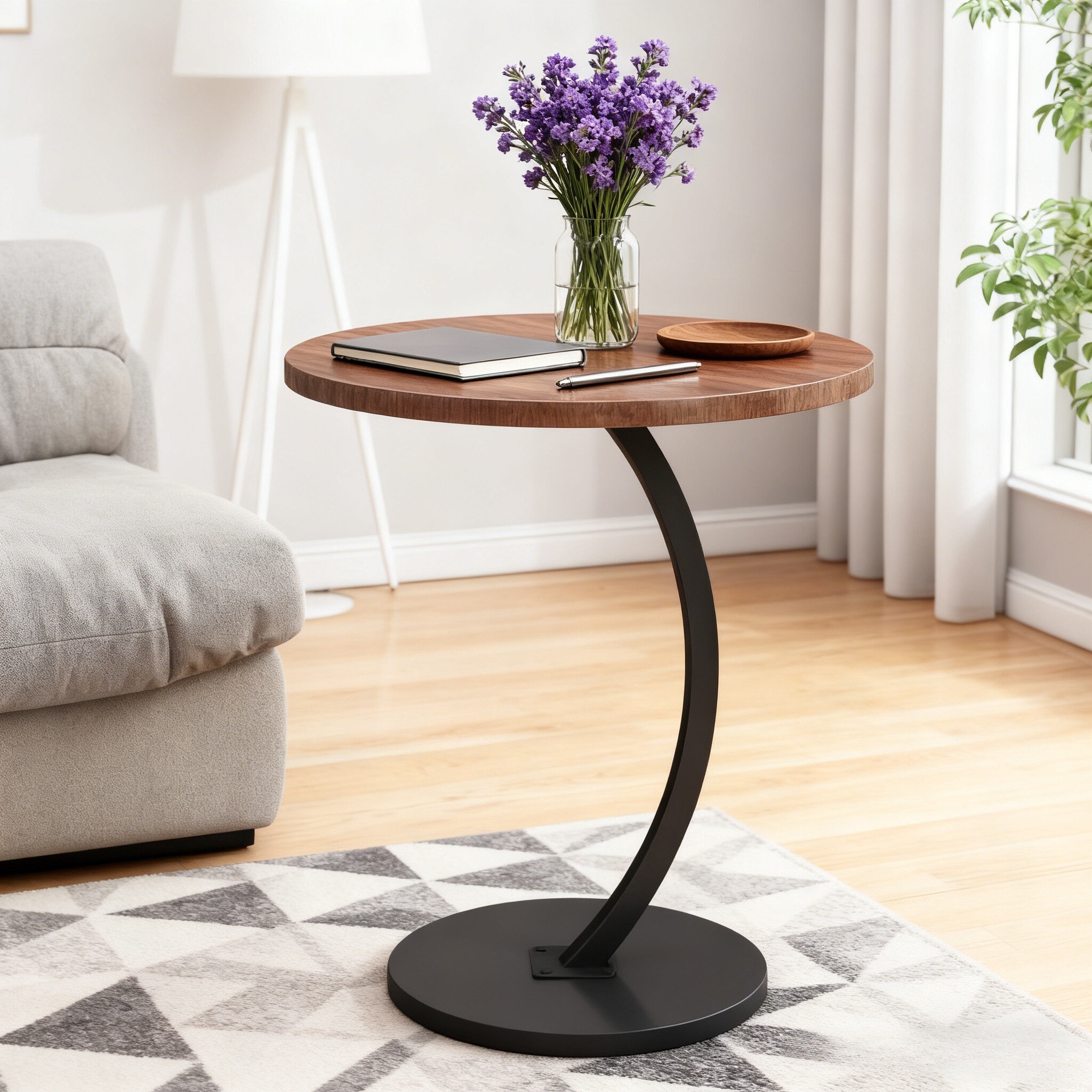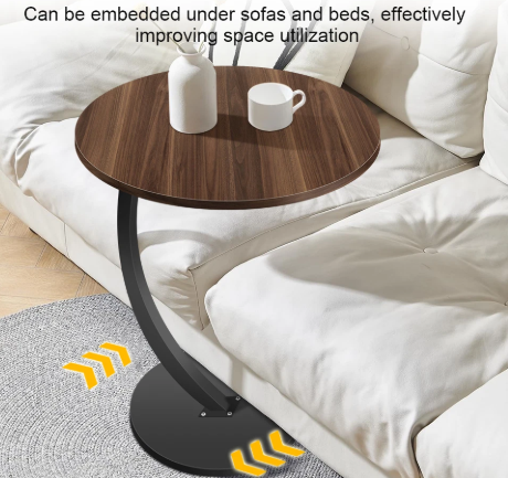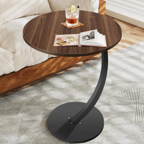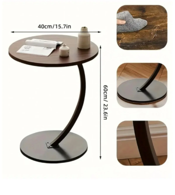 Оваа мала странична маса е изработена од цврста челична рамка и иверица за издржливост и долготрајност, со носивост до 20 кг. Дизајн во облик на буквата C. Закривените потпори на дрвената странична маса со дизајн во облик на буквата C можат да го сокријат долниот дел од тркалезната маса на дното од софата, намалувајќи го отпечатокот.