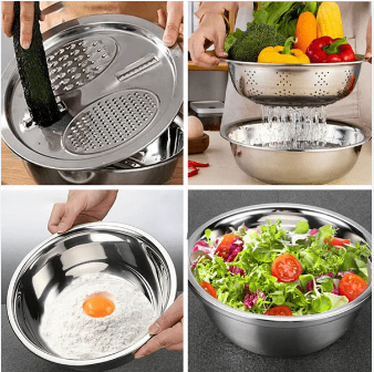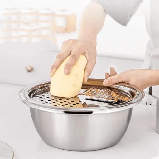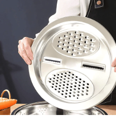 Триделен сад за сечење, рендање и цедење е иновативен комплет дизајниран за ефикасна подготовка на овошје и зеленчук. Направен од висококвалитетен нерѓосувачки челик, овој сет е издржлив и отпорен на корозија.