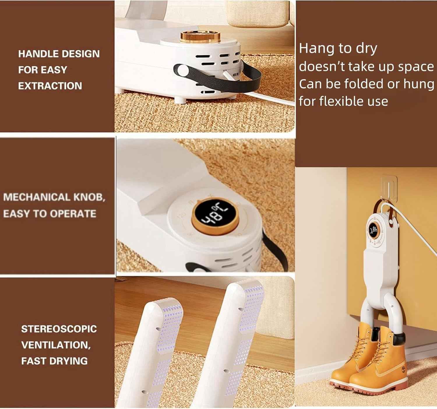Вградена термостатска машина за сушење на 55 °C осигурува сигурно сушење на чевлите без оштетување на материјалите, обезбедувајќи оптимална температура. Озонскиот стерилизатор и дезодоранс елиминираат микроорганизми и неутрализираат мириси, оставајќи ја околината свежа и хигиенска.