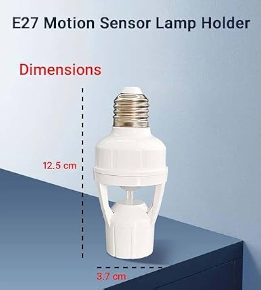 Има копче за прилагодување на осветлувањето и времето на одложување. Со висока чувствителност и компатибилност со LED светилки со E27 конектор, лесно се инсталира и е погоден за разни простории како спални, бањи, плакари, ходници и гаражи.