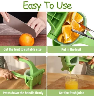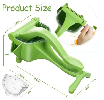 Рачната преса за овошје и зеленчук е изработена целосно од еколошка ABS пластика, која е безбедна за употреба. Со едноставен дизајн, само ставете го овошјето или зеленчукот внатре и притиснете. Оваа преса максимално ќе го исцеди вашиот состав. Рачката и цедалката лесно се вадат за полесно миење.