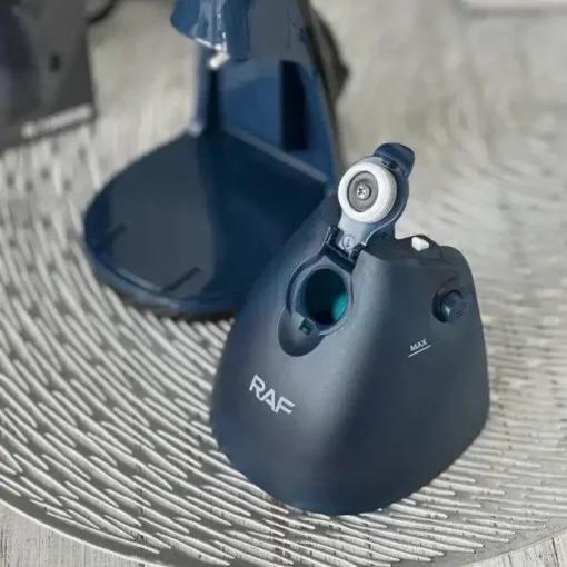 Резервоарот за вода од 300ml овозможува употреба од околу 20 минути со едно полнење. Во комплетот добивате и четка за влакна која се прикачува на пеглата за лесно чистење на облеката. Вклучени се: 1 RAF вертикална пегла на пареа и 1 четка за влакна.