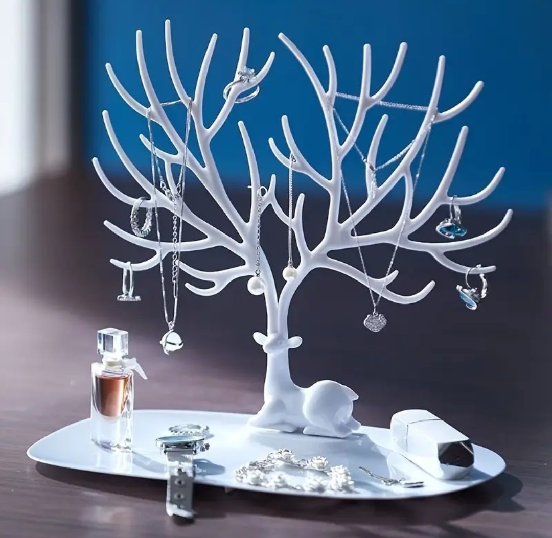 Уникатен организер за накит во форма на елен со рогови. Практично складирање и стилен дизајн за уредна просторија. Идеален за накит, козметика и грицки.