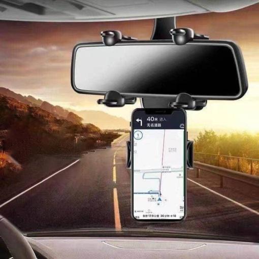 Универзалниот практичен држач за телефон на ретровизор е идеален за безбедно користење на вашиот телефон додека возите. Со можност за ротација од 360°, овозможува одлична видливост и лесно следење на навигацијата. Компатибилен е со речиси сите паметни телефони и има стабилна конструкција која е изработена од висококвалитетна пластика.