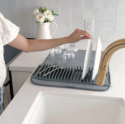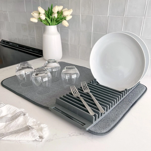 Апсорбирачката подлога за кујна е идеален додаток за секој дом, која брзо и ефикасно отстранува вишок вода од садови и прибор. Изработена од полиестер, оваа подлога брзо апсорбира вода, што ја прави практична за секојдневна употреба. Со својствата за брзо сушење, можете да ја користите како цедилка за садови, сушење зеленчук или заштитник за работната површина.