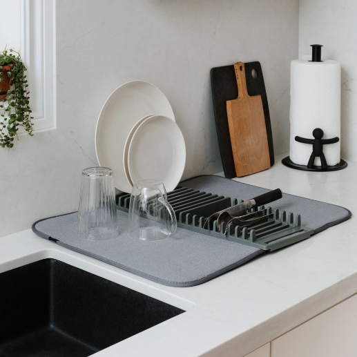 Нејзиниот естетски дизајн ја прави вашата кујна не само функционална, туку и визуелно привлечна. Лесна е за чистење и одржување, може да се пере и во машина, а истовремено ја штити работната површина од влага и дамки. Со голема впивачка моќ, вашите садови ќе останат суви и чисти без потреба од постојано бришење.